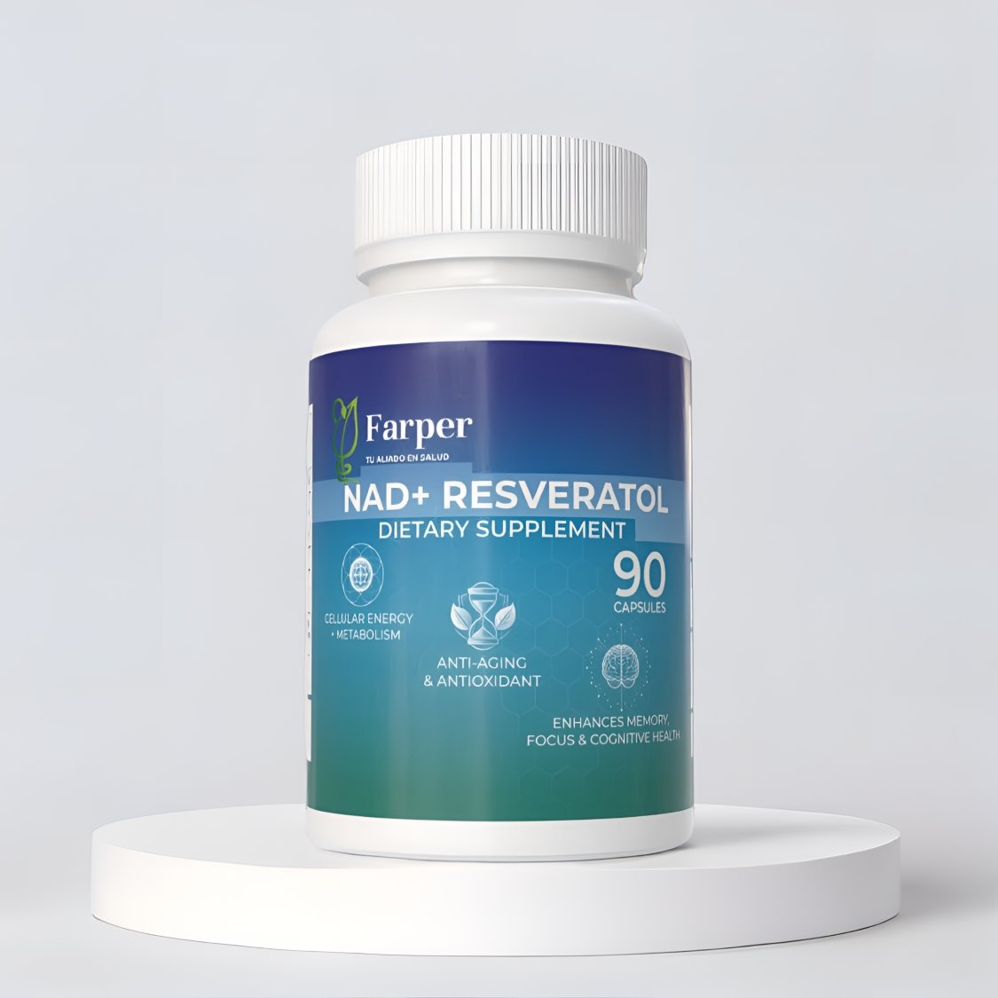 NAD+ Resveratrol es un suplemento en cápsulas formulado para impulsar la energía celular, promover la longevidad y proteger las células del estrés oxidativo. Su poderosa combinación de Nicotinamide Adenine Dinucleotide (NAD+) y Resveratrol (Trans-Resveratrol) trabaja a nivel mitocondrial para optimizar la producción de energía, apoyar la reparación del ADN y mantener la función cognitiva y cardiovascular.